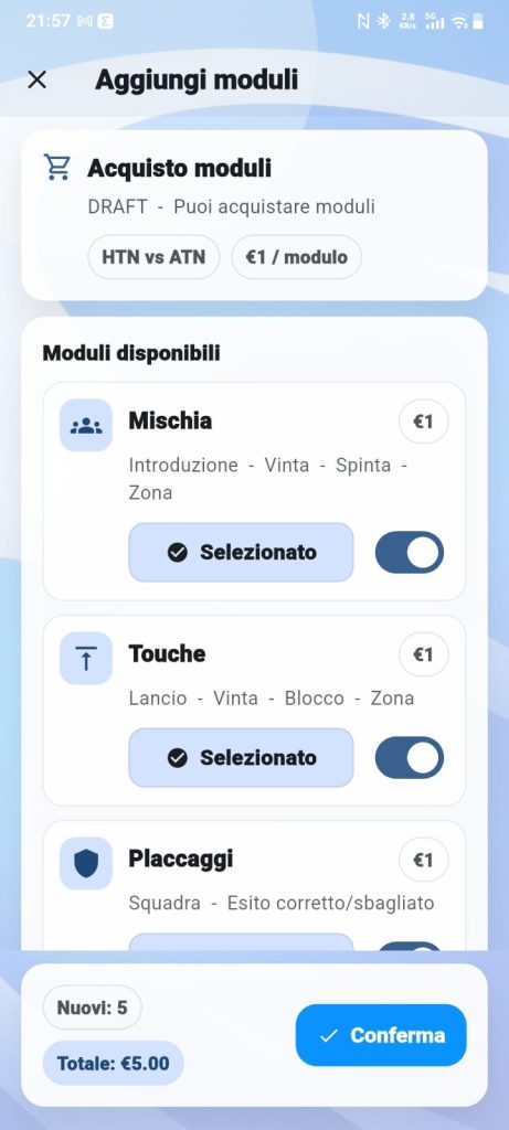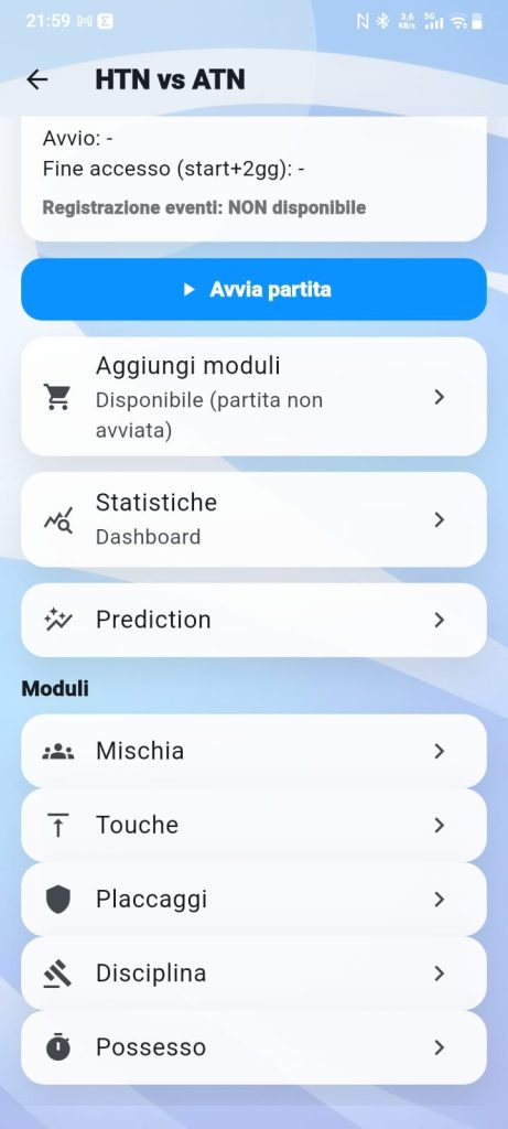 La registrazione degli eventi è attiva fino a due giorni dopo l’avvio della partita e l’utente può scegliere in qualsiasi istante quali moduli acquistare.